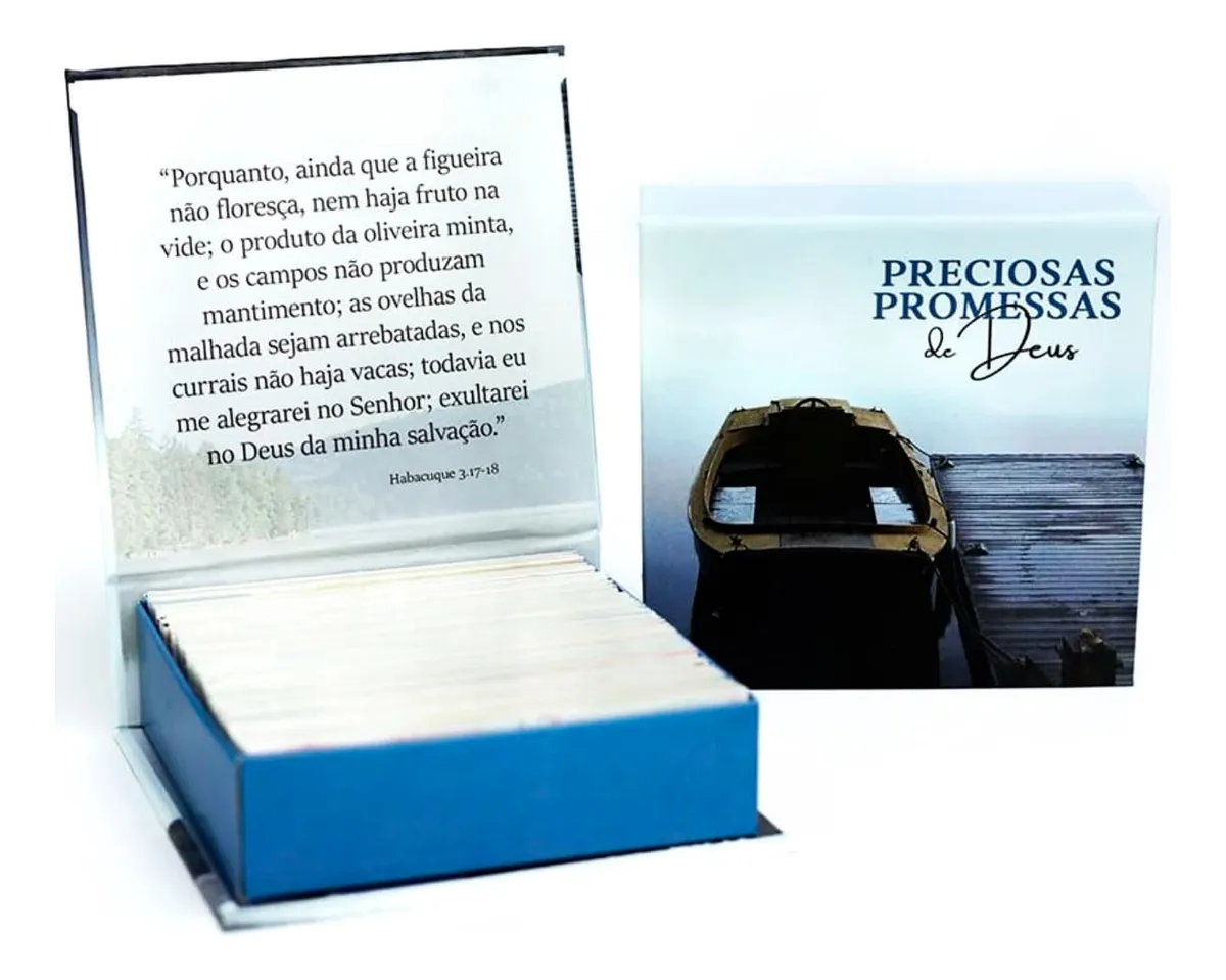 Preciosas Promessas de Deus é um livro box com versículos bíblicos selecionados que você pode ler um pequeno pedaço selecionado da Palavra de Deus a cada dia. Ideal para presentear amigos e amigas que querem ter sempre à mão uma pequena e importante forma de partilhar o poder de Deus em sua vida. Texto em Linguagem acessível e de fácil compreensão.
